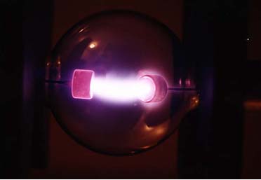 So what was Dr. Rife’s Device , or as some call it, a ” Rife Machine ” ? Dr. Rife’s device used a radio transmitter with either a fixed or it is thought in some units, a variable carrier frequency , that output a pulsed transmission. There are several important methods that are utilized to achieve energetic coupling. One technique Dr. Rife used to make the wave of his machine couple to the body was through the use of a special antenna. Instead of using a metal antenna, Dr. Rife’s instrument coupled the pulsed output from the radio transmitter to a gas filled, glass tube with closely opposed electrodes. This special tube is technically known as a Phanotron Diode. The pulsed output energy from the radio transmitter ( the RF wave ) caused the gas to form a plasma and then glow when in operation. The close spacing of the electrodes, coupled with a gas at high pressures results in a phanotron tube being useful for pulse rates well into the MHz regions. One should think of a neon sign tube that is turned on and off, many thousands or millions of times a second for a comparison. The Phanotron Diode was filled with an inert gas ( typically Helium), or mixture of gasses such as argon, neon, and helium. Different gasses give off different colors or spectra. For example, Neon is orange, Argon is purple mauve, and Helium is pinkish white-gray.