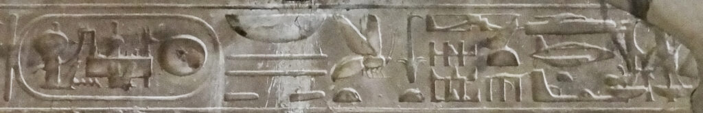 Our resident MUFON psychologist and hypnotherapist, Dr. Ruth Hover, and her husband took a trip to the pyramids and temples of Egypt. In the temple at Abydios, she photographed a wall panel in a section where an overlaying panel with Egyptian hieroglyphics crumbled and fell, revealing an older panel beneath it. This older panel, shown below, contains embossed images of what appear to be ancient aircraft.