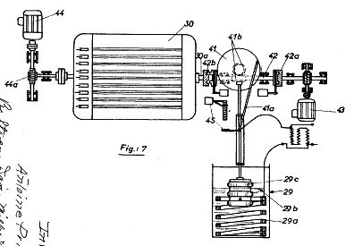 A further converter set 32 producing low-voltage direct current modulated to a rate of 30 to 120 pulses per minute by virtue of variometer 30; this current supplies motor 21, together with the motors driving variometer 30 and the control device of resistor 29.