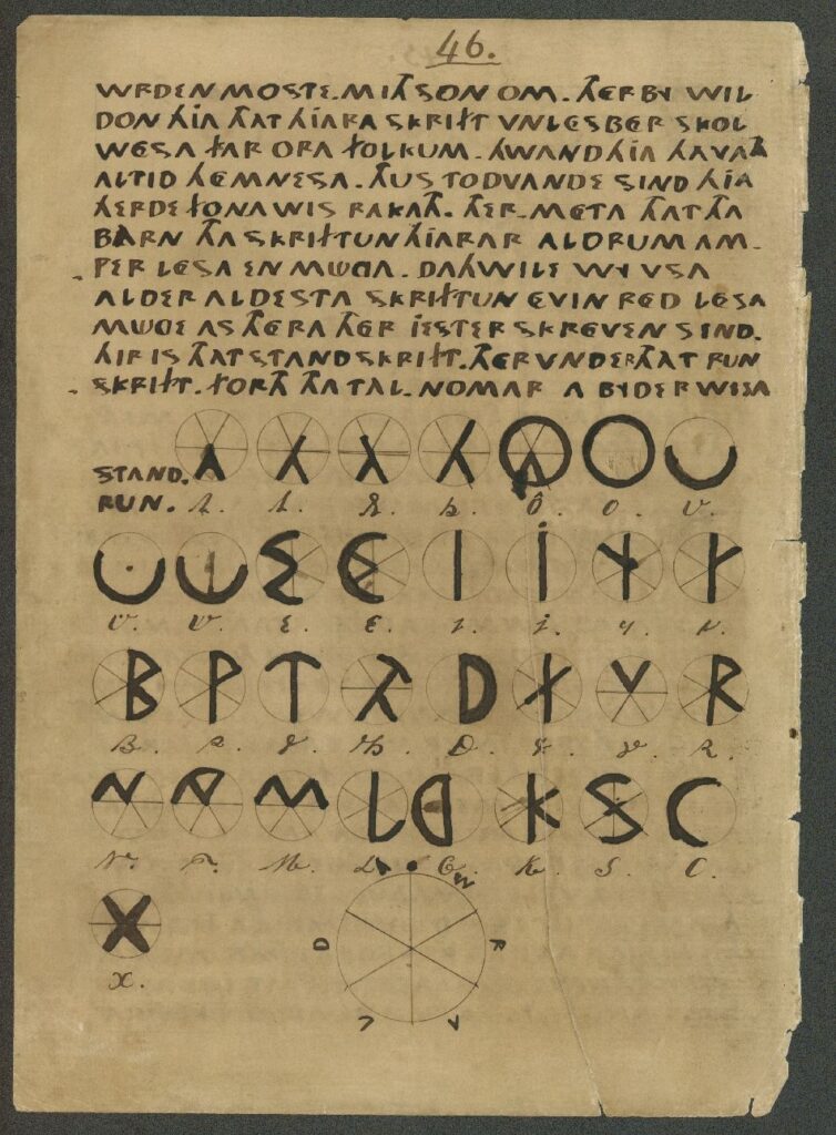 Page 48 of the Oera Linda manuscript, showing the alphabet in use